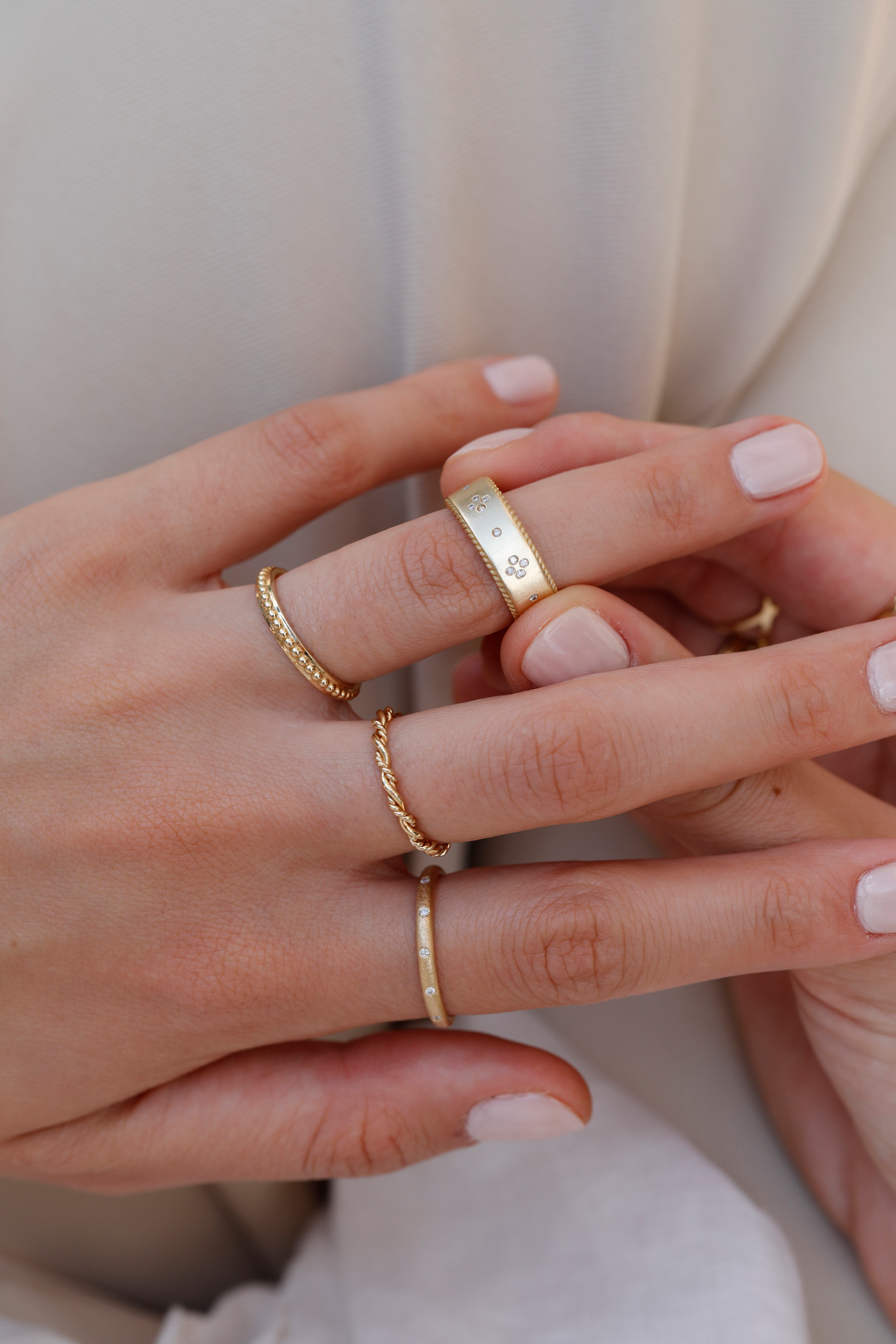 Always opt for a snug but comfortable fit. If you're unsure between two sizes, it's usually better to choose the slightly larger size to ensure your ring isn't too tight. Keep in mind that these methods provide approximations and may not be as accurate as professional measurements taken by a jeweler or trying our ring sizer tool. Sarah Elise rings are available in quarter sizes to have the best fit.