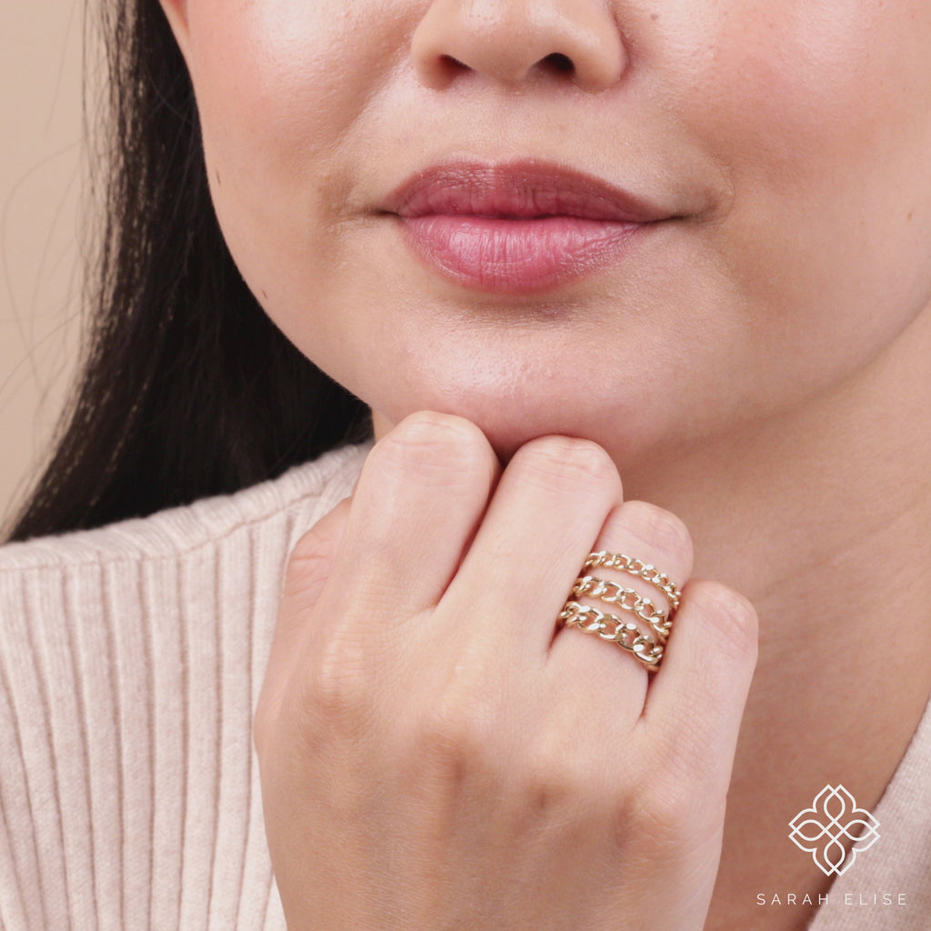 Solid Gold Miami Cuban Link Chain Ring - 14k Skip to content