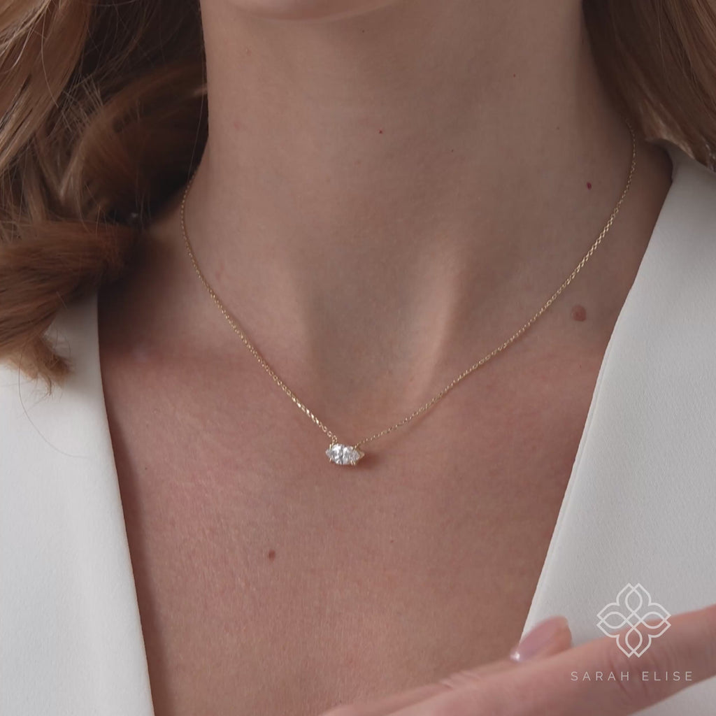 Embrace modern sophistication with our handcrafted East-West Marquise Lab Grown Diamond Necklace. Meticulously forged in your choice of solid 10K, 14K, or 18K gold, this elegant necklace features a stunning marquise-cut lab-grown diamond set in a contemporary horizontal (east-west) orientation. This unique setting offers a fresh, architectural take on the classic solitaire, designed to sit gracefully along the collarbone and elongate the neckline.