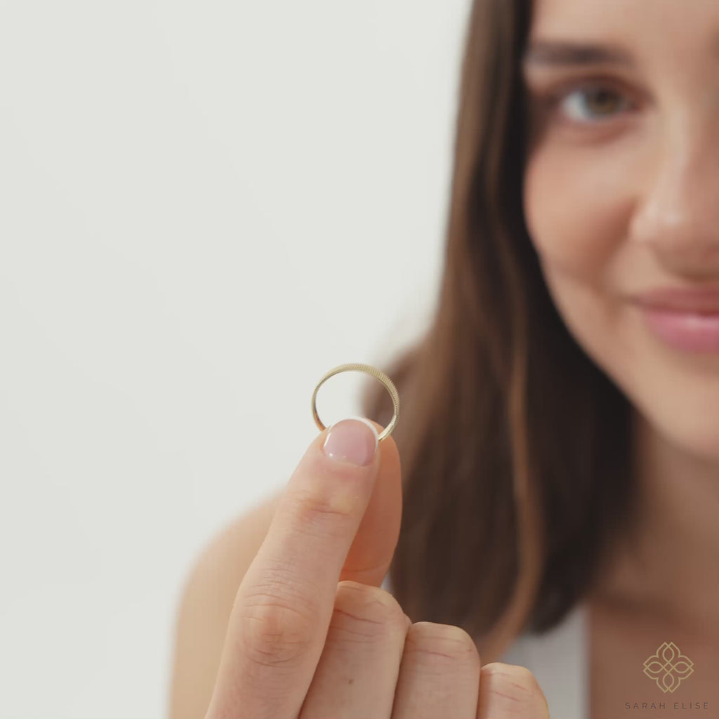 Experience the unique texture of our popular Bonnie ring in this versatile 3mm width. Crafted in solid 10k, 14k, or 18k gold, this band offers a tactile element that catches the light beautifully. The 3mm width is substantial enough to wear solo yet still perfect for stacking with other favorites. Also available in slimmer 2mm and wider 4mm and 5mm options.