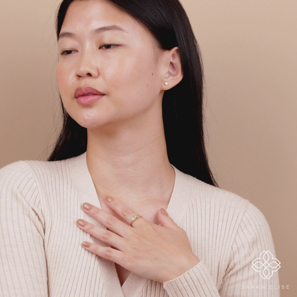 These gold cluster rings are an absolute showstopper! Wear your own August birthstone Peridot, or wear it to represent the people you love. If you want to make it extra special, add a Sarah Elise mini diamond initial to the stack! When it comes to stacking, it's all about creating a look as unique as you and your journey.