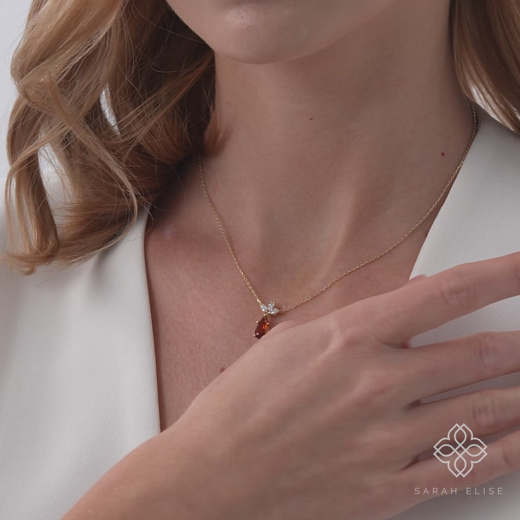 Radiate warmth and brilliance with our handcrafted Pear Citrine and Lab Grown Diamond Necklace. Meticulously forged in your choice of solid 10K, 14K, or 18K gold, this exquisite pendant features a vibrant pear-cut citrine as its focal point. Beneath this golden-hued gemstone sits a graceful cluster of three pear-shaped lab-grown diamonds, meticulously arranged to create a shimmering "drop" effect that captures and reflects light from every angle.