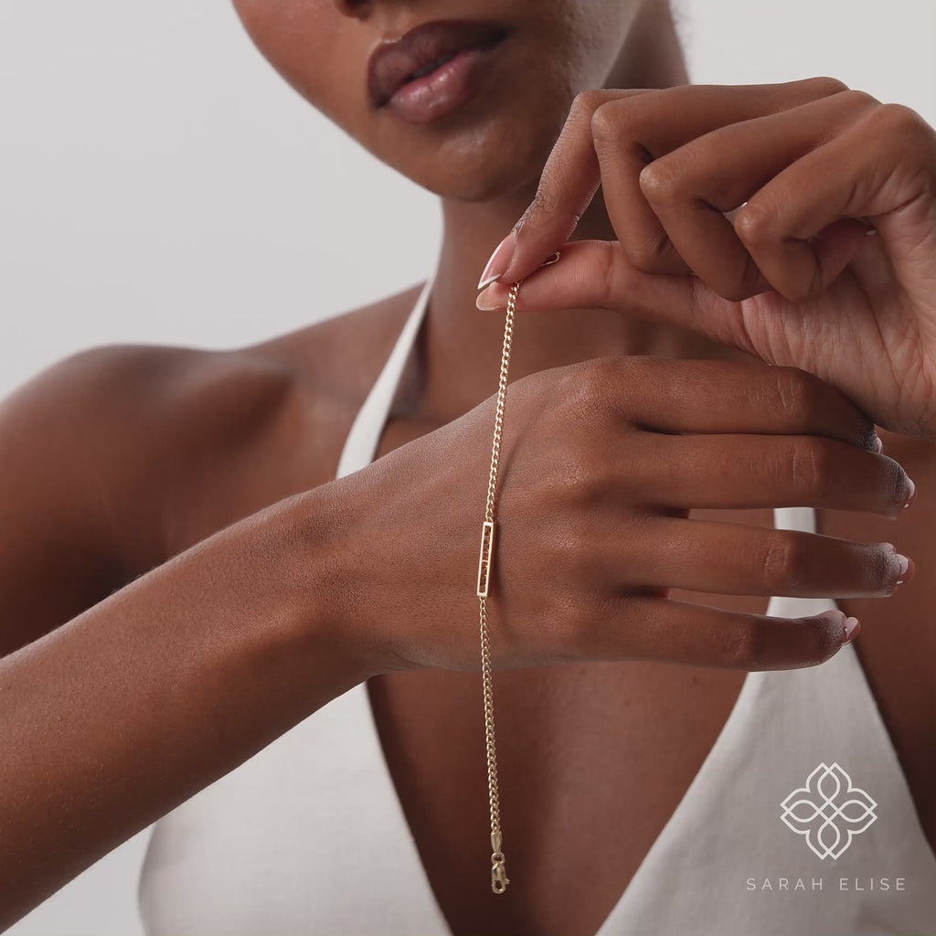 Unleash your unique style with our captivating Solid Gold Citrine Curb Chain Bracelet. This beautiful piece features a delicate, solid gold curb chain centered with a striking bar of vibrant, natural citrine. Each princess-cut gemstone is seamlessly channel-set, creating a smooth, continuous line of rich purple around your wrist.