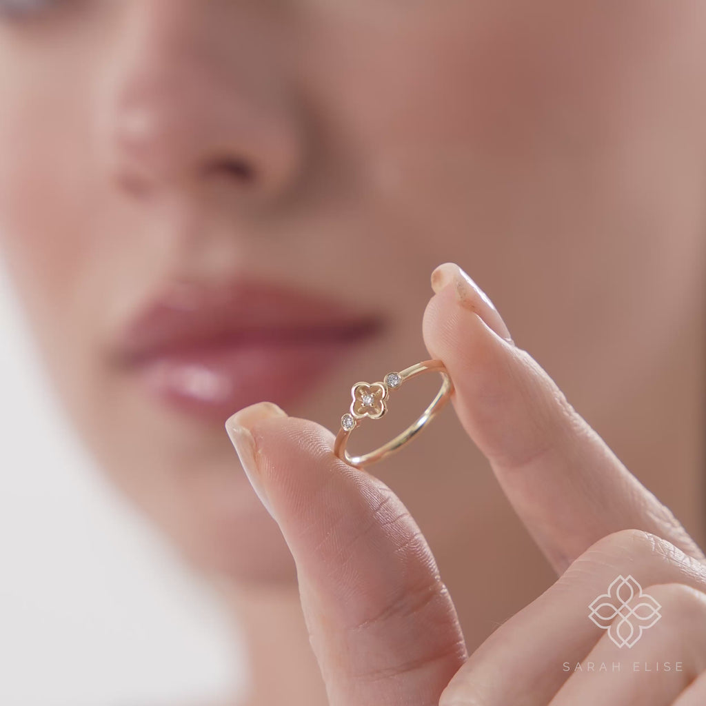 Dainty Diamond Clover Ring | Sarah Elise Jewelry Skip to content