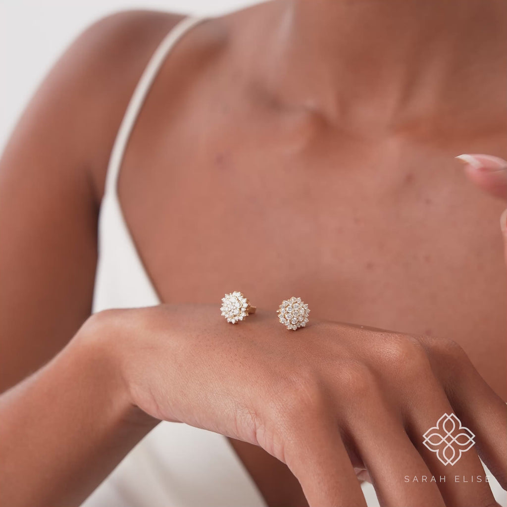 These stunning, solid gold diamond pave earrings are the perfect way to add a touch of luxury to your everyday style. The cluster design features sparkling diamonds that catch the light from every angle. These earrings are sure to turn heads and make you feel like a million bucks.