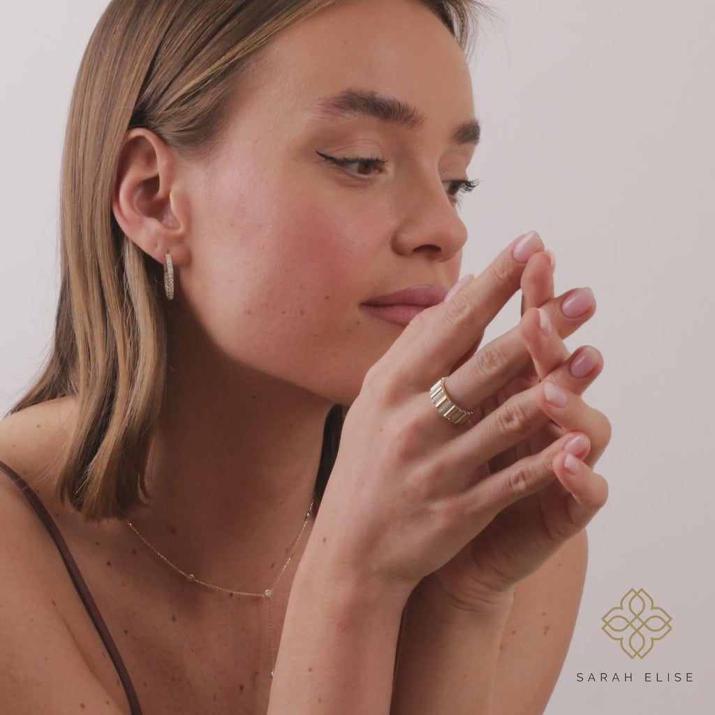Embrace timeless elegance with this luxurious 14k or 18k Gold Diamond Cigar Band. This exquisite ring features a wide band, meticulously crafted from polished gold and adorned with a captivating alternating pattern of pave-set diamond bars. The ribbed texture adds a touch of subtle sophistication, while the fluted design creates a mesmerizing interplay of light and shadow.