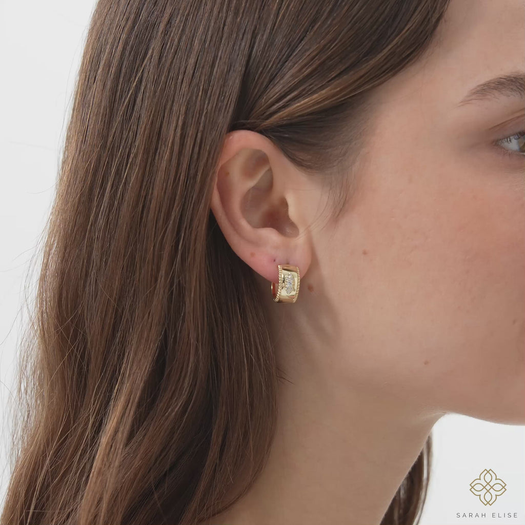 Add a touch of everyday luxury with these elegant solid gold huggie hoop earrings. Featuring a delicate pave setting of sparkling lab-grown diamonds. Comfortable for all-day wear and perfect for stacking or wearing alone. Crafted in genuine solid gold for lasting shine.