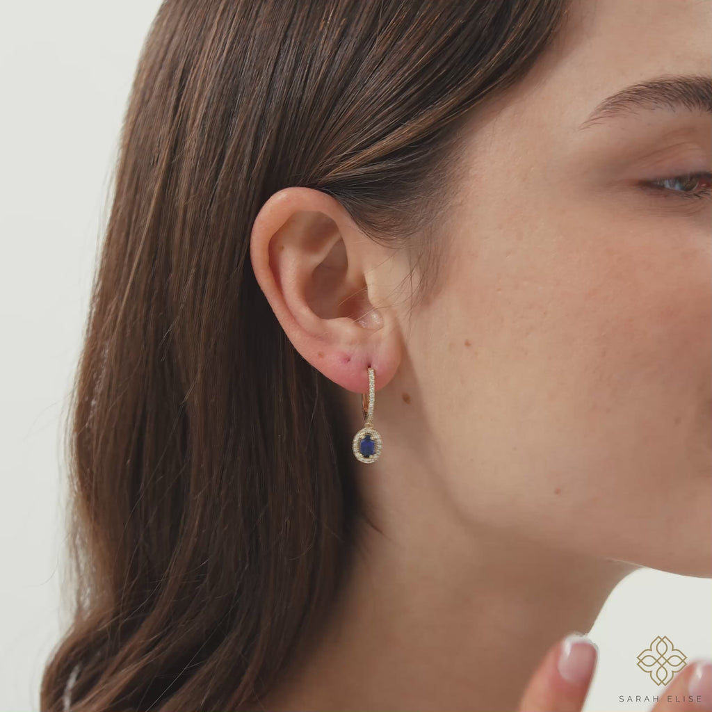 These timeless huggie earrings feature a stunning oval lab-grown sapphire as the centerpiece, framed by a sparkling halo of lab-grown diamonds. The elegant drop design and secure huggie closure make them perfect for both everyday wear and special occasions. Crafted with ethically sourced materials and available in your choice of metal.