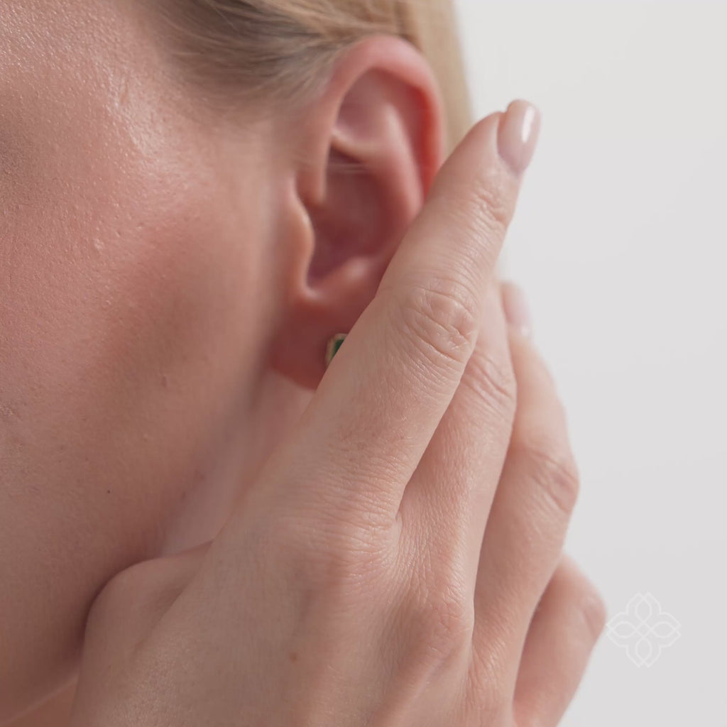 Meticulously forged in your choice of solid 10K, 14K, or 18K gold, these exquisite solitaire studs feature stunning octagon-cut natural emeralds. The emerald cut, also known as the octagon cut, is celebrated for its sophisticated "hall of mirrors" effect, showcasing the deep, lush green hues and natural character of the gemstone.