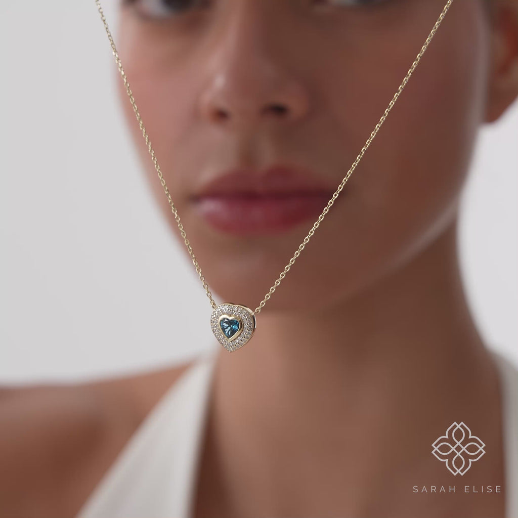 Bring a touch of timeless sentiment and vivid color to your collection with our London Blue Topaz Heart Necklace. Crafted in lustrous solid gold, this exquisite pendant features a deep, vibrant heart-cut London Blue Topaz gemstone. The striking heart is beautifully framed by a delicate halo of sparkling lab-grown diamonds, enhancing its color and adding continuous brilliance.