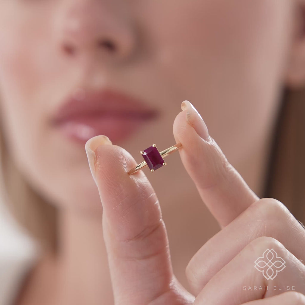 Infuse your style with the geometric precision and fiery elegance of our Octagon Cut Ruby Solitaire Ring. This captivating piece showcases a single, magnificent natural ruby, precisely cut into a sophisticated Octagon shape. The clean, step-cut facets highlight the gem's intense red hue, creating a striking and unique display of color.