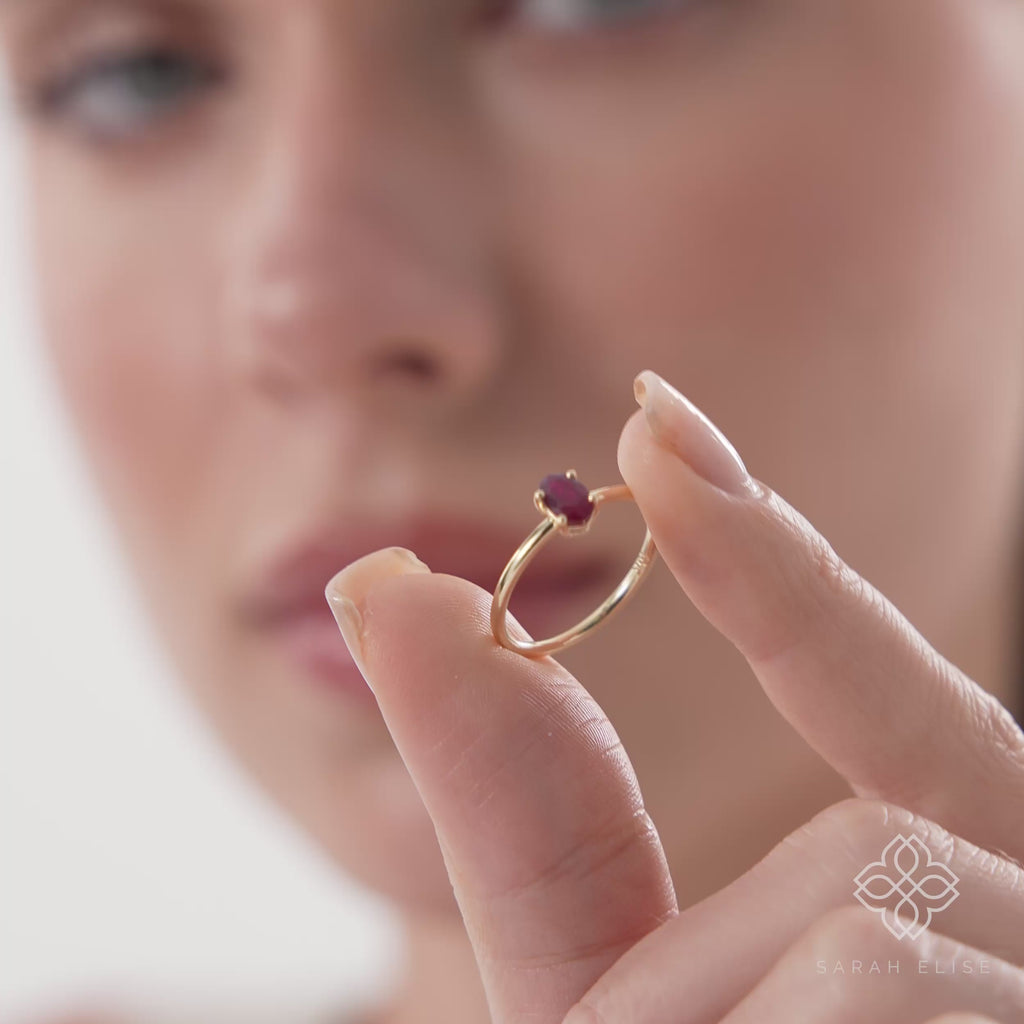 Oval Ruby Ring | Sarah Elise Jewelry Skip to content