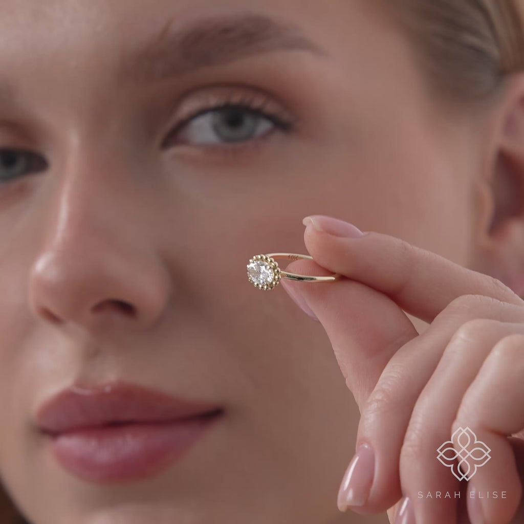 ring | Vintage Style Oval Diamond Beaded Engagement Ring | Sarah Elise Jewelry Skip to content
