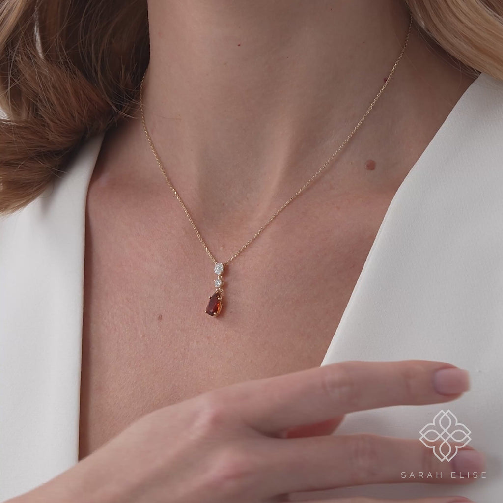 Capture the glow of a golden sunset with our handcrafted Long Pear Citrine and Lab Diamond Necklace. Meticulously forged in your choice of solid 10k, 14k, or 18k gold, this striking pendant features an elongated, long pear-cut natural citrine. This unique, slender silhouette offers a modern and sophisticated take on the traditional teardrop shape. To enhance its radiant warmth, the citrine is crowned by a shimmering cluster of round brilliant lab-grown diamonds, creating a luxurious contrast of honey-hued color and icy fire.