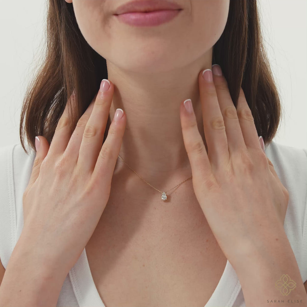 Elegant and ethical, this necklace features a beautiful 0.70 carat pear-shaped lab-grown diamond set in a classic and minimalist setting to showcase the brilliance of the stone. A perfect everyday piece or a thoughtful gift. Lab-grown diamonds offer the same fire and scintillation as mined diamonds with a smaller environmental footprint.