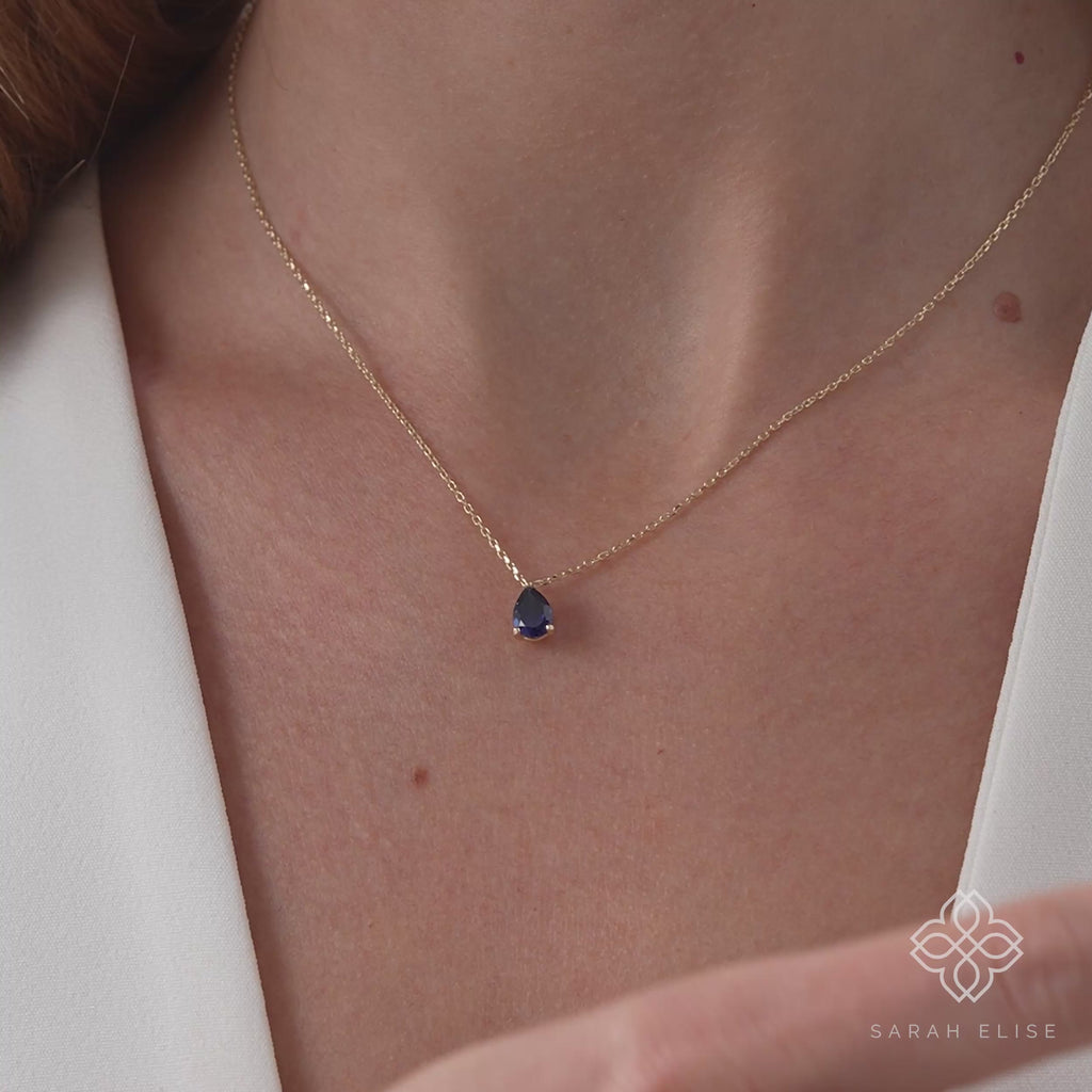 Pear Shape Solitaire Sapphire Necklace, Zoelle