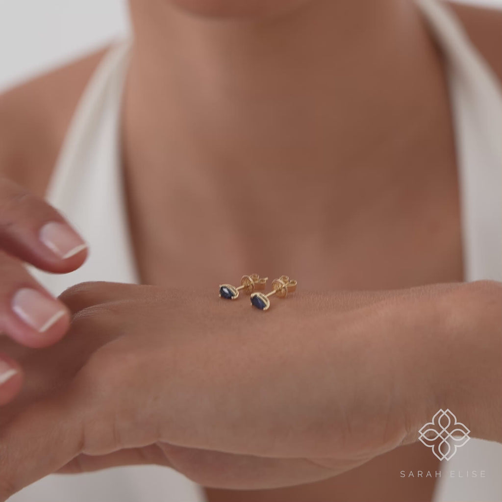 A sophisticated pop of color for your everyday style: our Petite Natural Sapphire Studs. Crafted in lustrous solid gold, these exquisite earrings feature a magnificent natural blue sapphire, perfectly cut and set in a delicate prong setting. The deep, rich hue of the sapphire is beautifully showcased in a classic solitaire design.