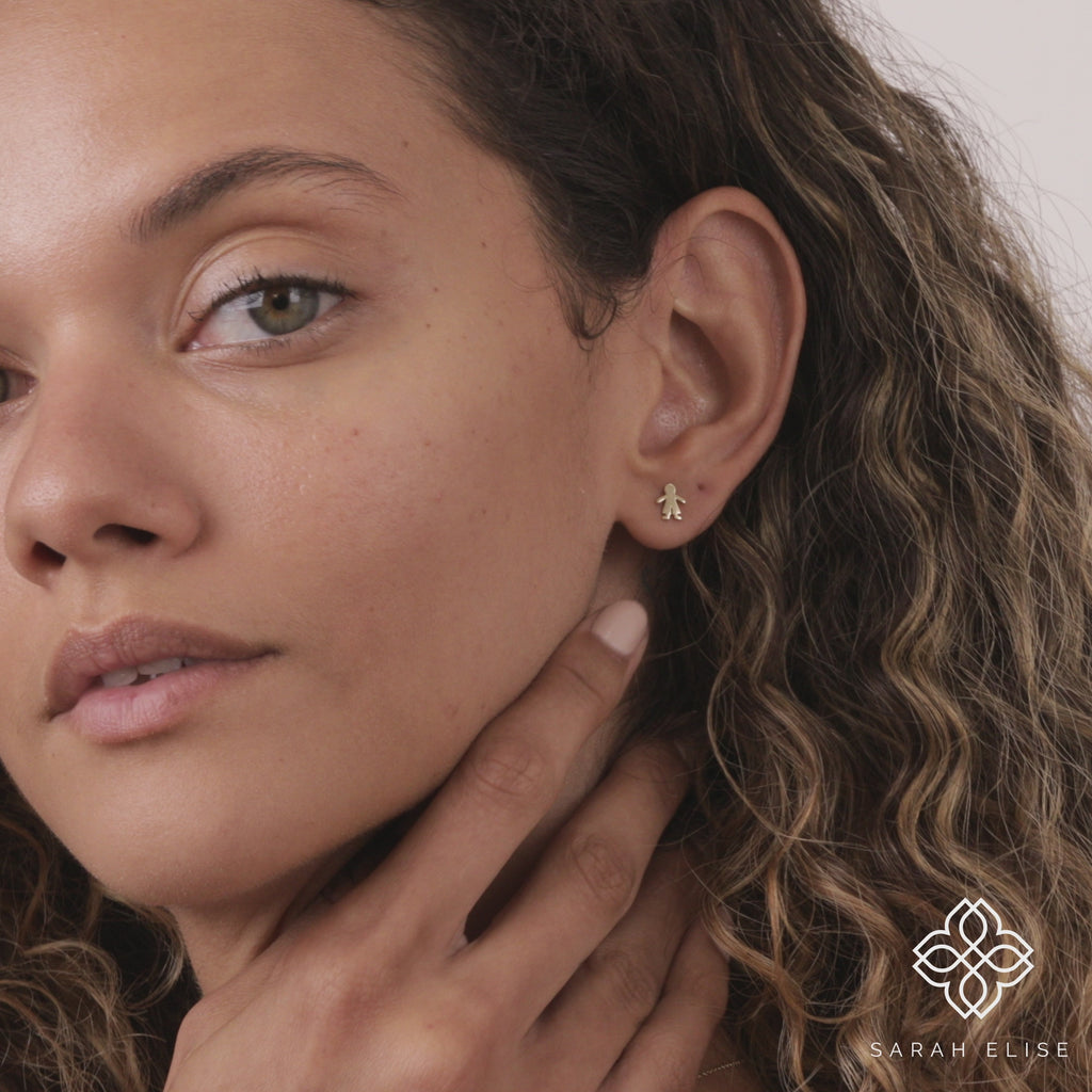 14k Solid Gold Baby Boy Shape Stud Earrings | Handmade Jewelry