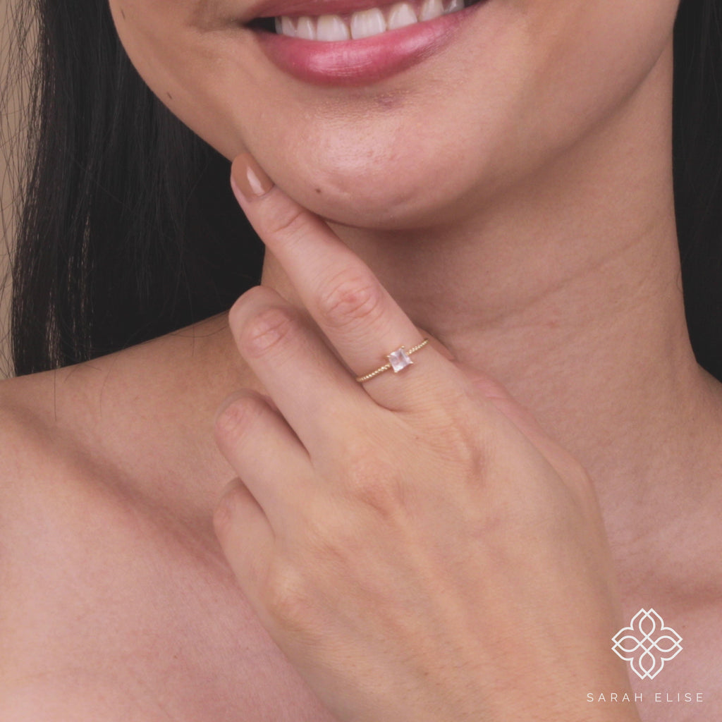 We love a twisted rope band because it add unique interest to your ring set! In high polish solid gold, it stands out yet being a dainty & delicate band. Natural Rose Quartz will be perfect to add a pop of color to your hand to gaze into daily! We will make it to your exact size in your metal of choice.