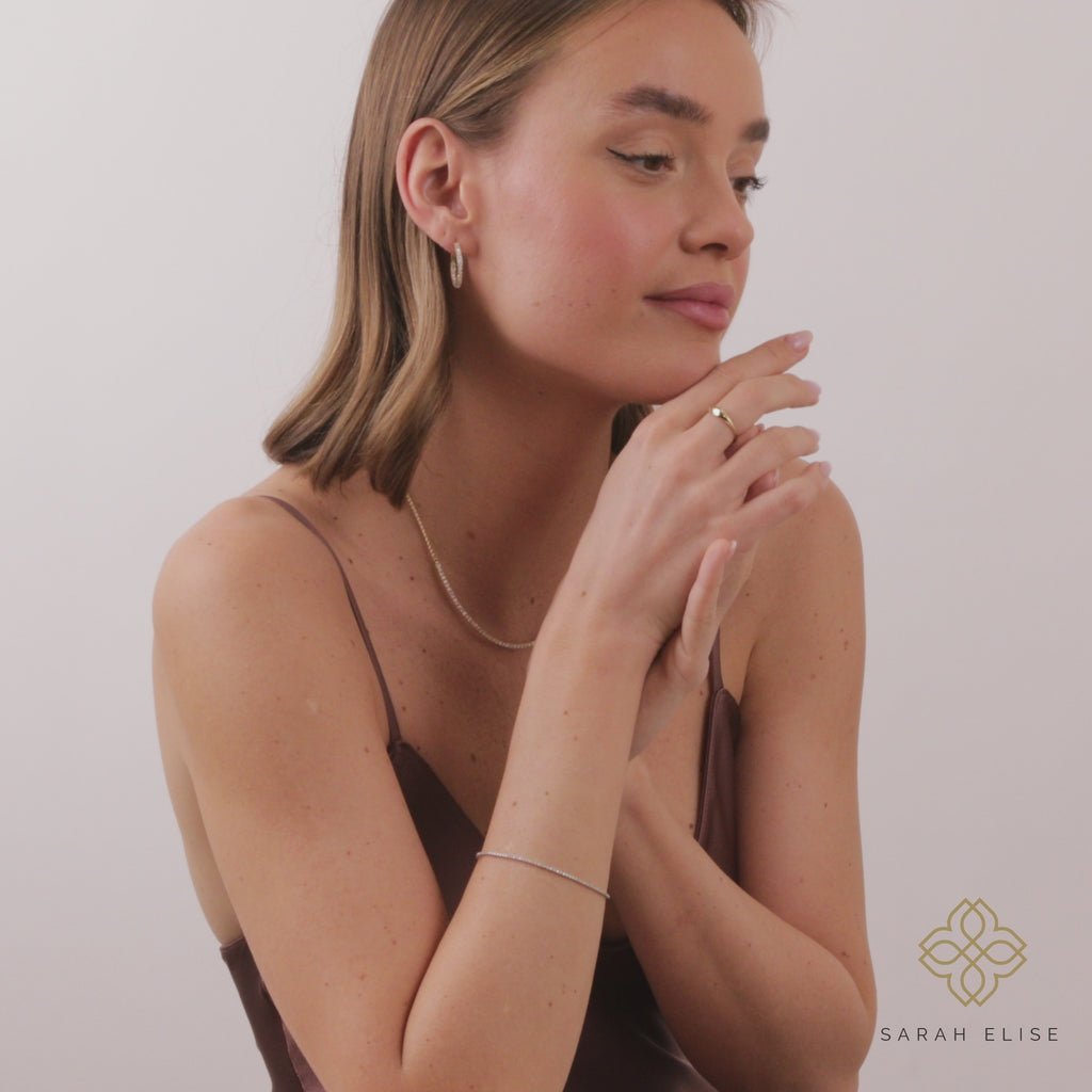 This stunning gold diamond tennis bracelet is a timeless piece that will be treasured for years to come. It features a continuous row of sparkling diamonds, each meticulously set in a delicate 14k gold setting. The bracelet is finished with a secure box clasp and a safety latch for added peace of mind.